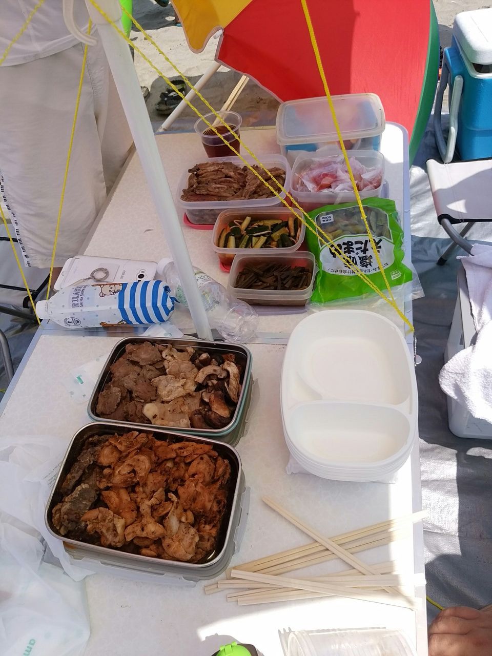 BBQ場が遠いので肉を予め焼いて来た。この方が時間が節約出来て呑みに専念できる