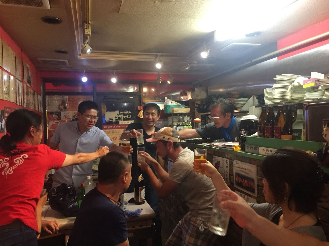 仲間が後から到着するたびに乾杯