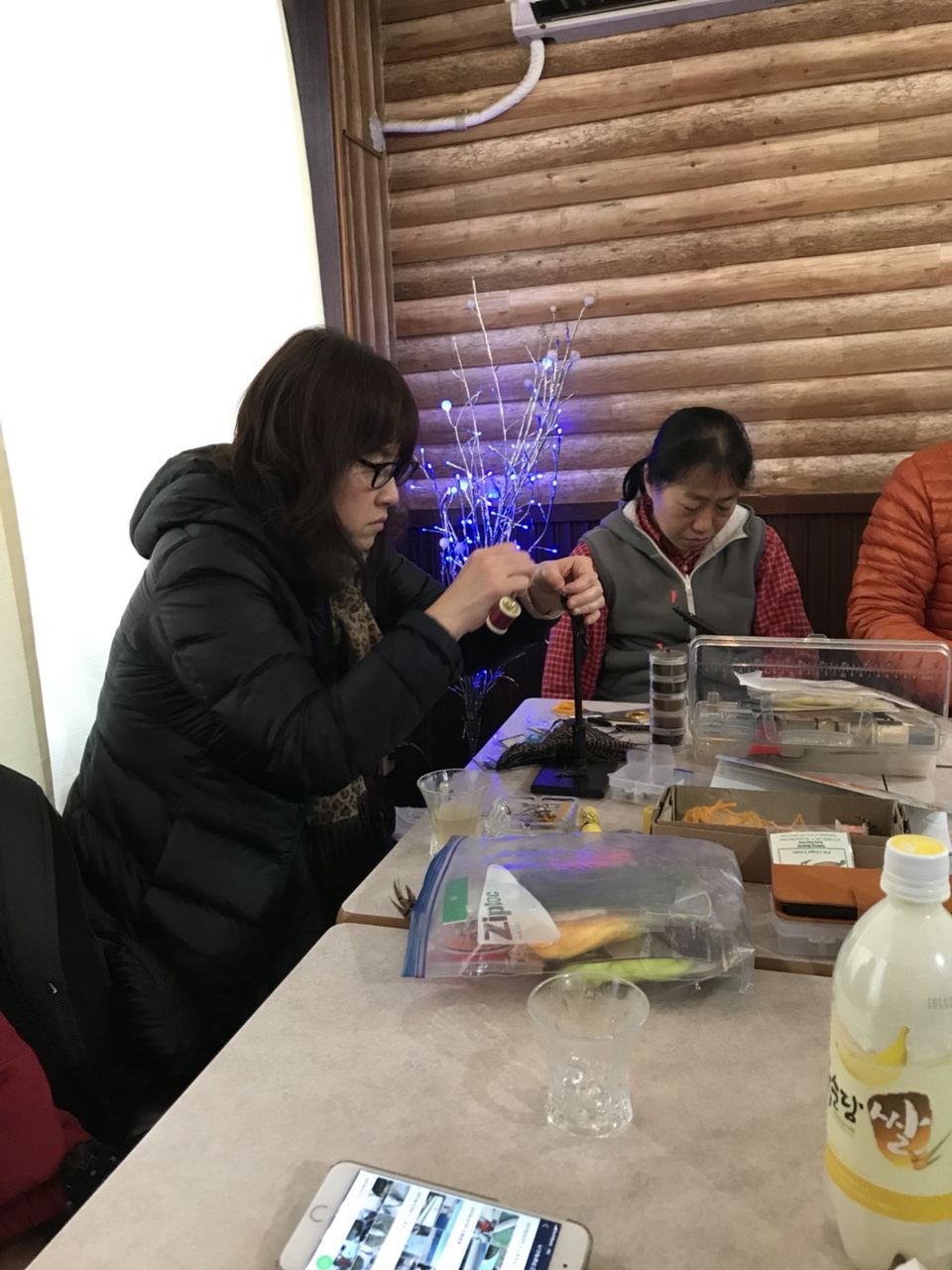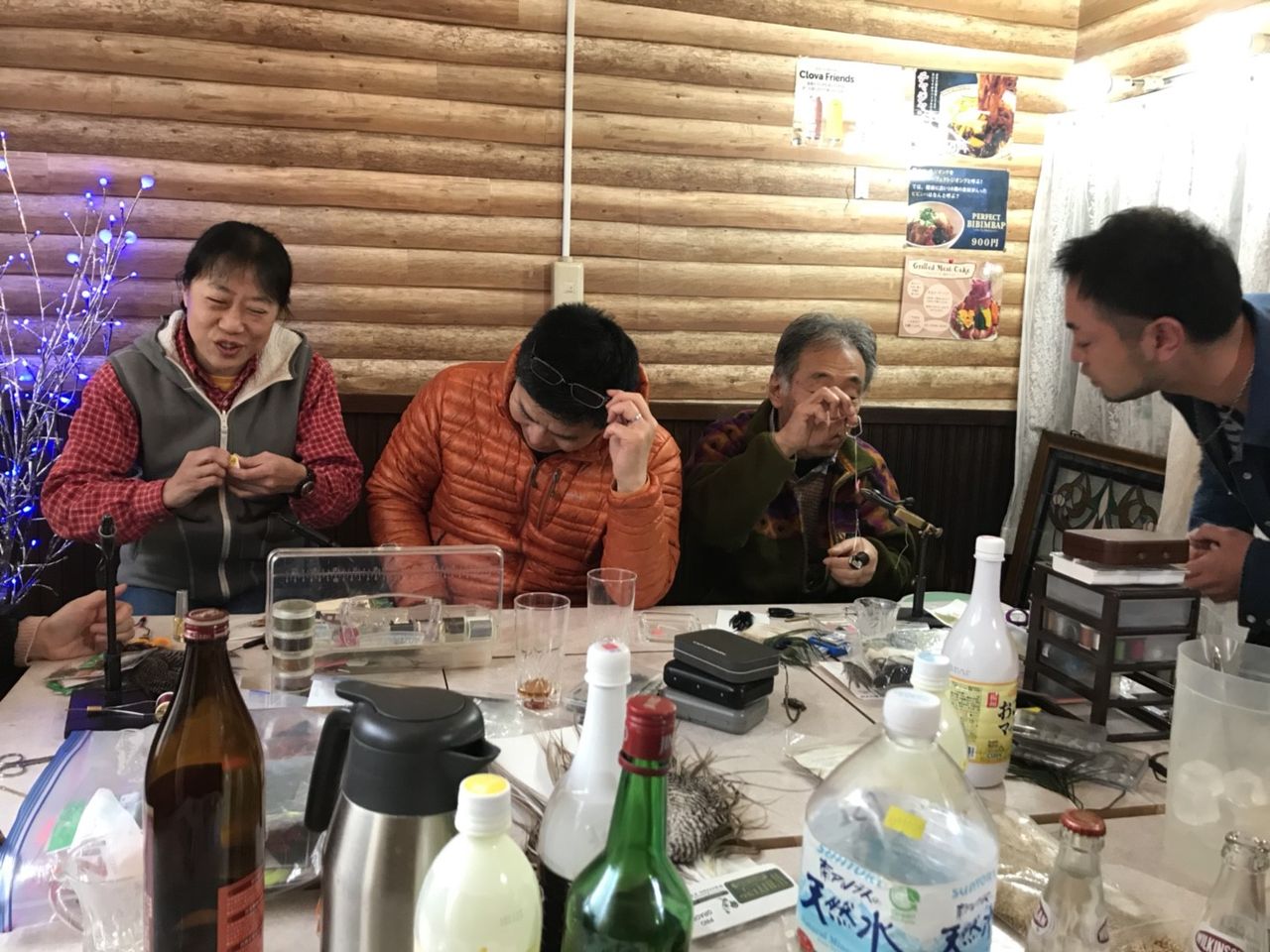 それでも5名集合した。夕方は毛鉤作り、夜は飲食とトークを楽しんだ。