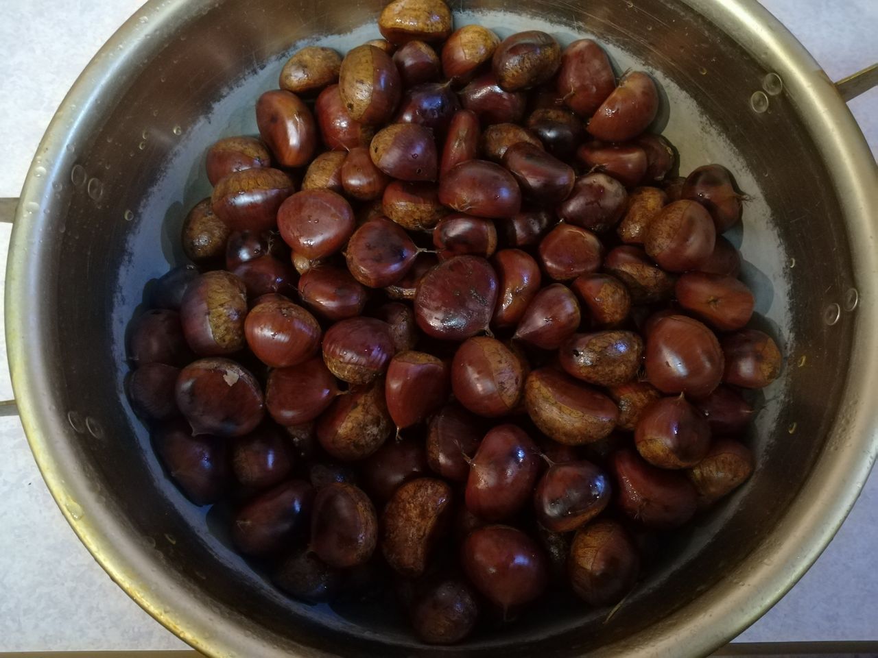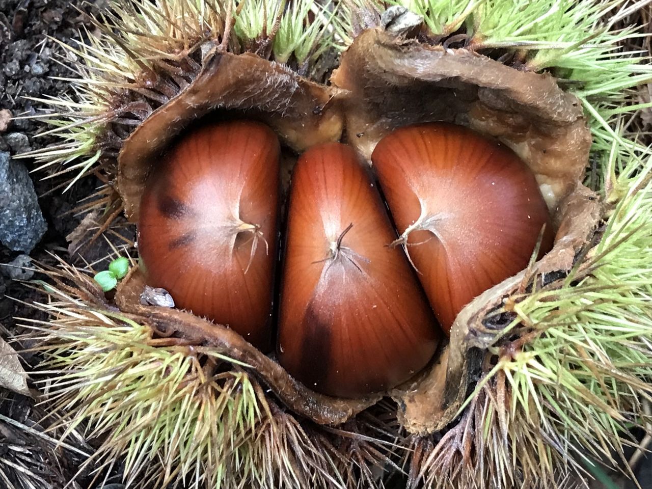 この日にとれた栗。艶、大きさと申し分ないが、虫食いの穴が空いていないのに栗虫が付いてるのが多かった。