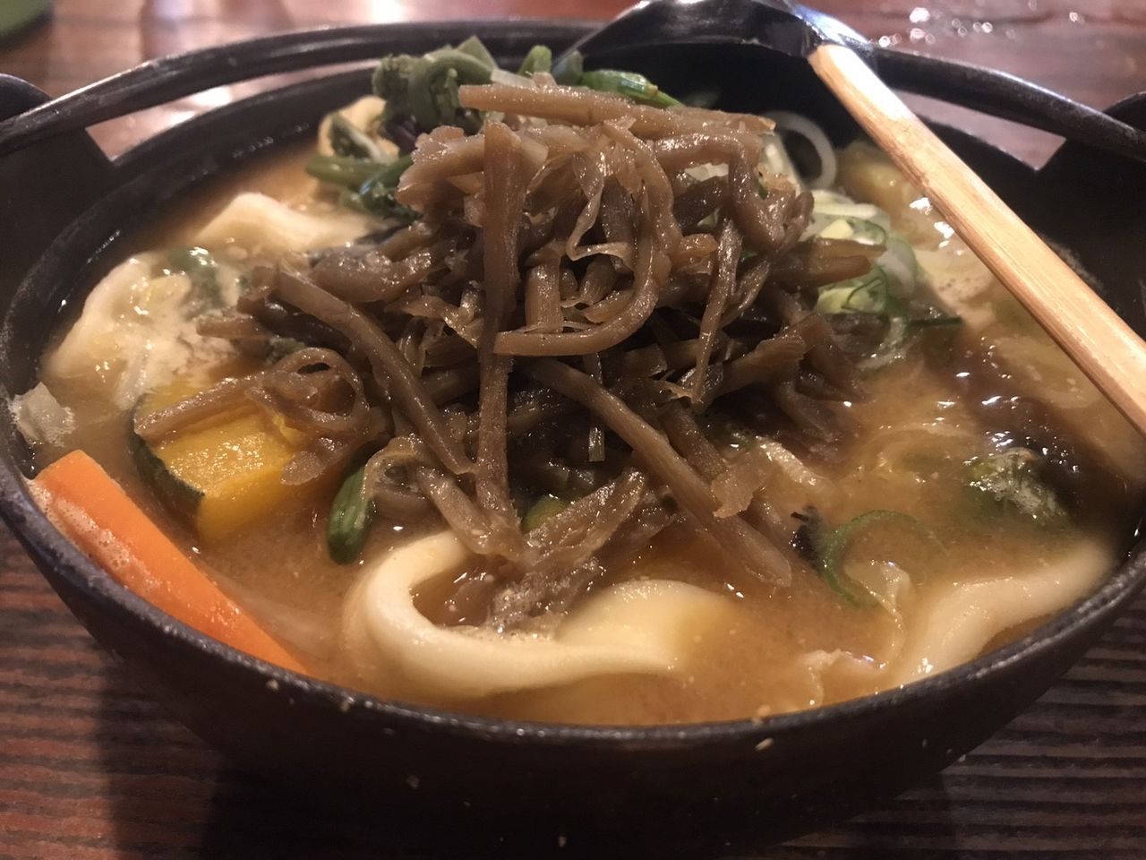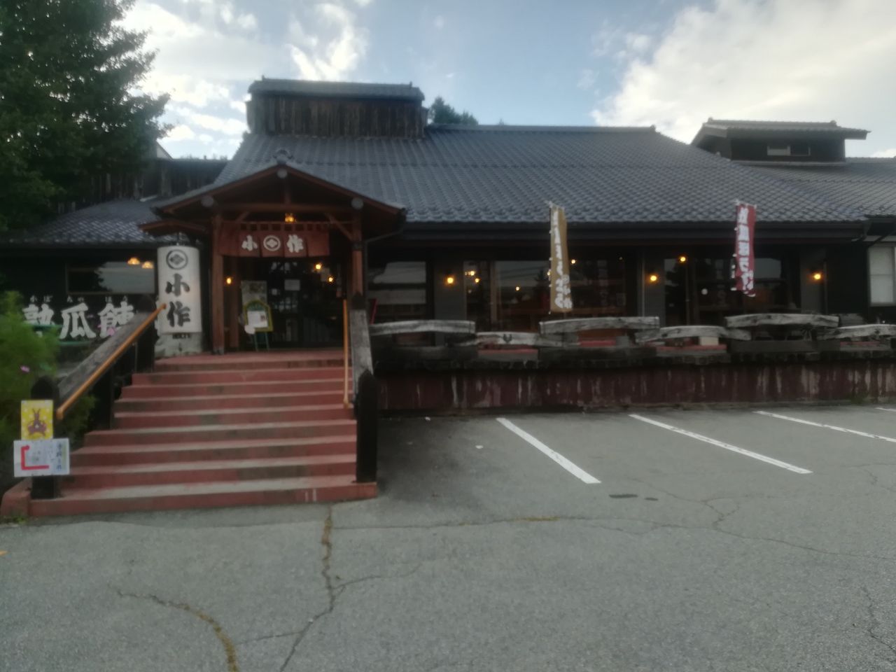 帰りは清里の「モスバック」でキノコ定食を食べる予定でしたが留守(多分釣りに行ってる)だったので、「小作」でほうとうを食べました。