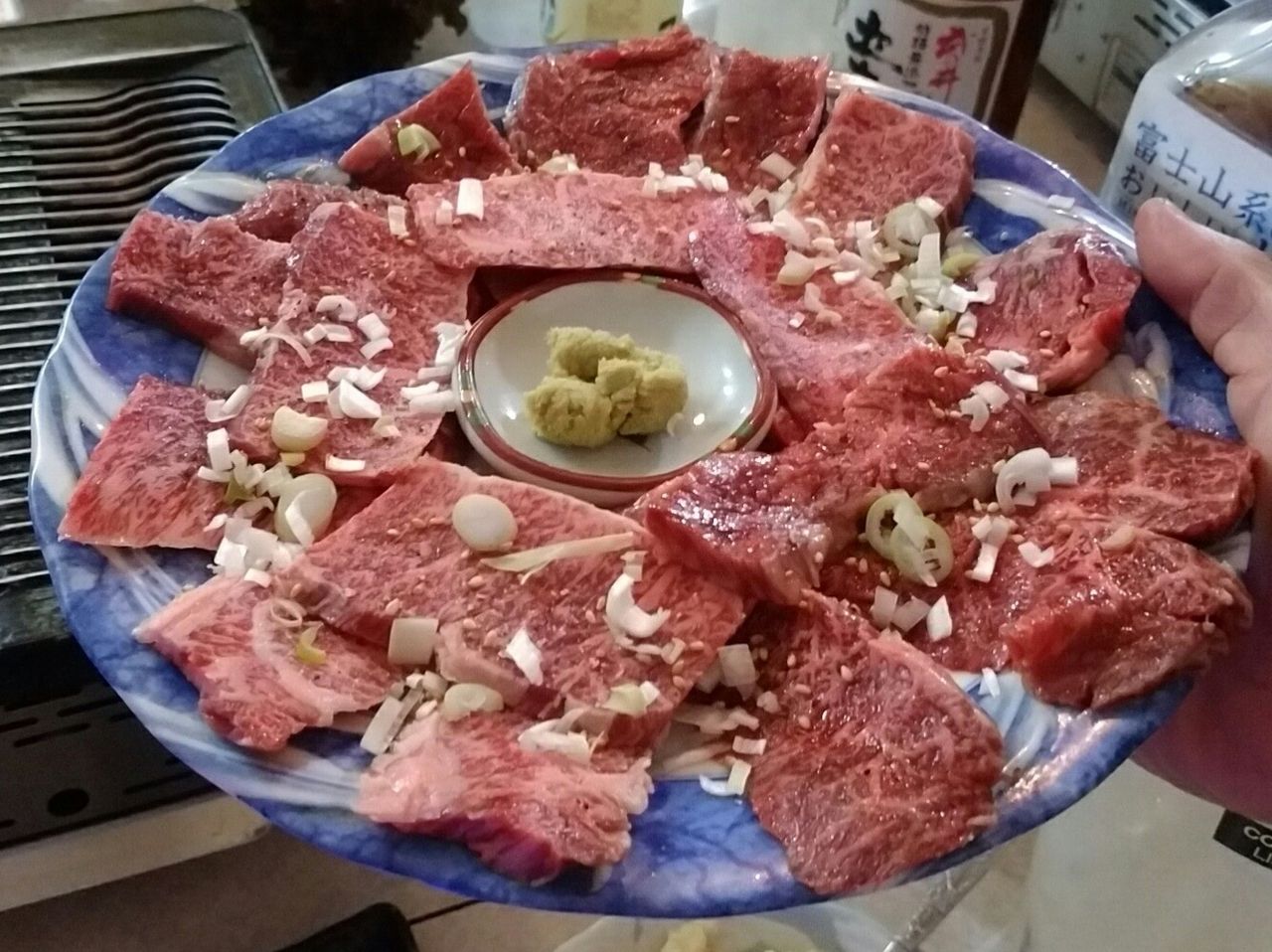 本日のメインメニュー 黒毛和牛リブロースのテンコ盛りで1人が1枚